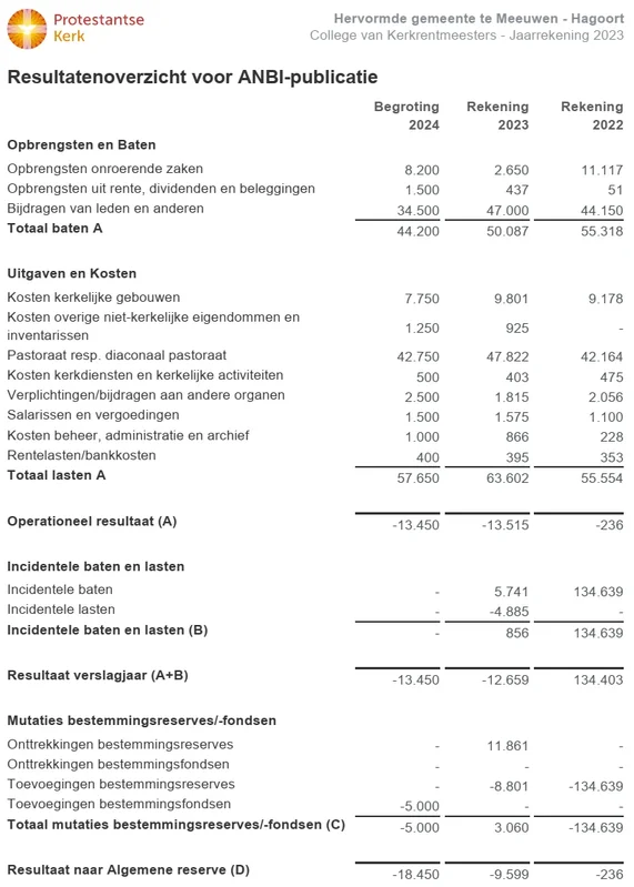 De Protestantse Kerk heeft van de Belastingdienst een groepsbeschikking ANBI gekregen. Dat wil zeggen dat de afzonderlijke gemeenten en andere instellingen die tot dit kerkgenootschap behoren zijn aangewezen als ANBI. Dit is ook van toepassing op de Hervormde gemeente te Meeuwen en Hagoort